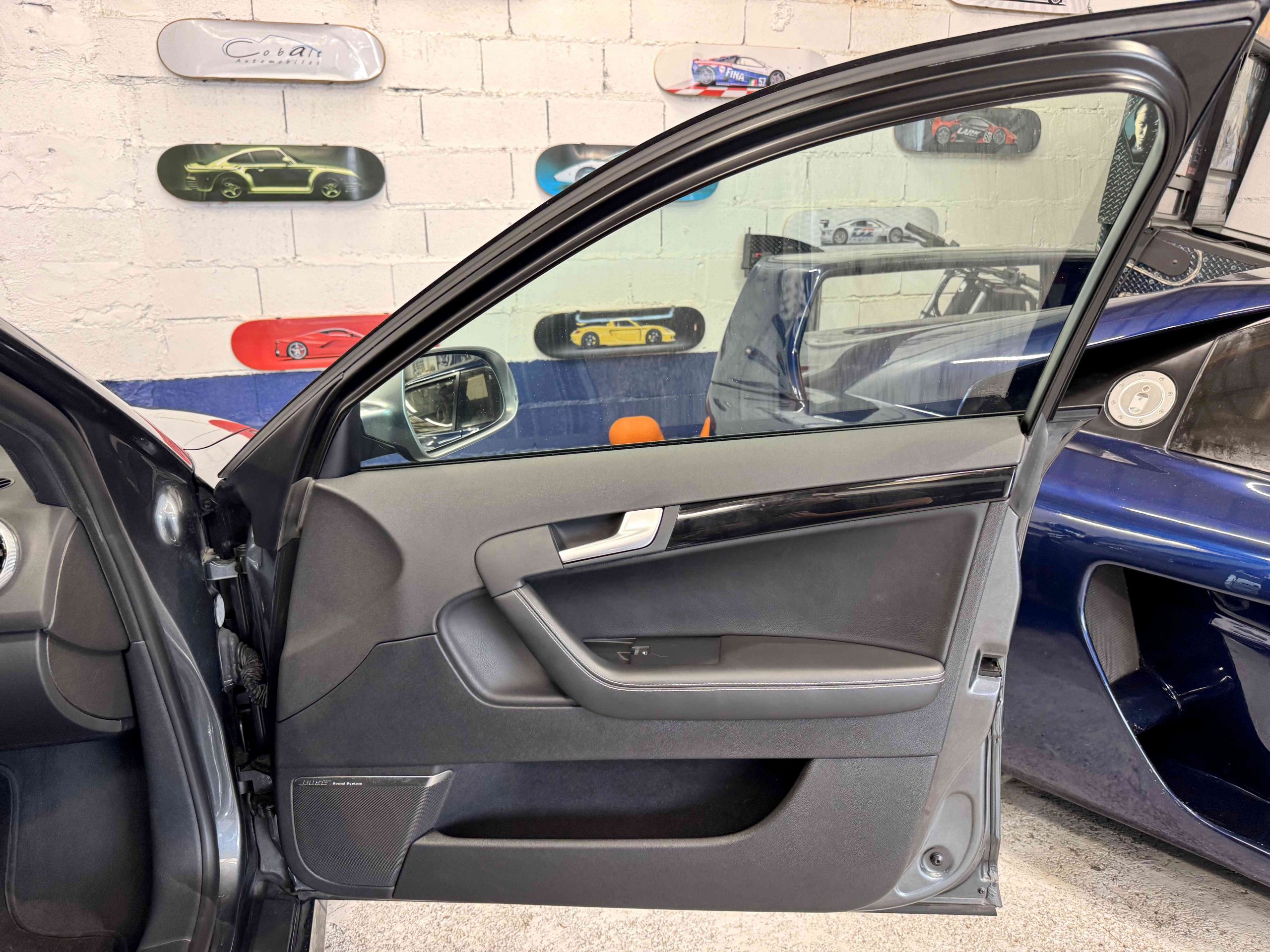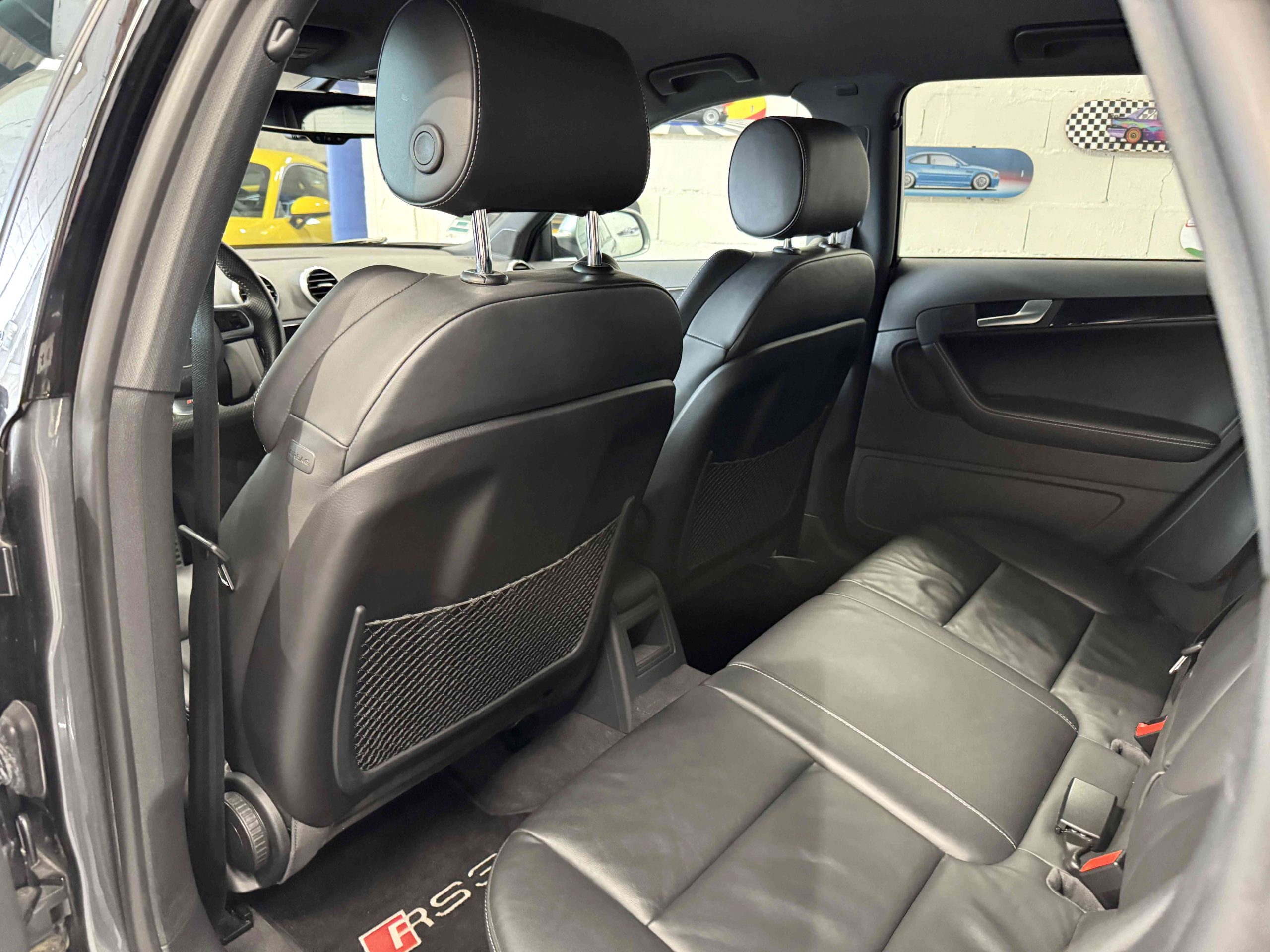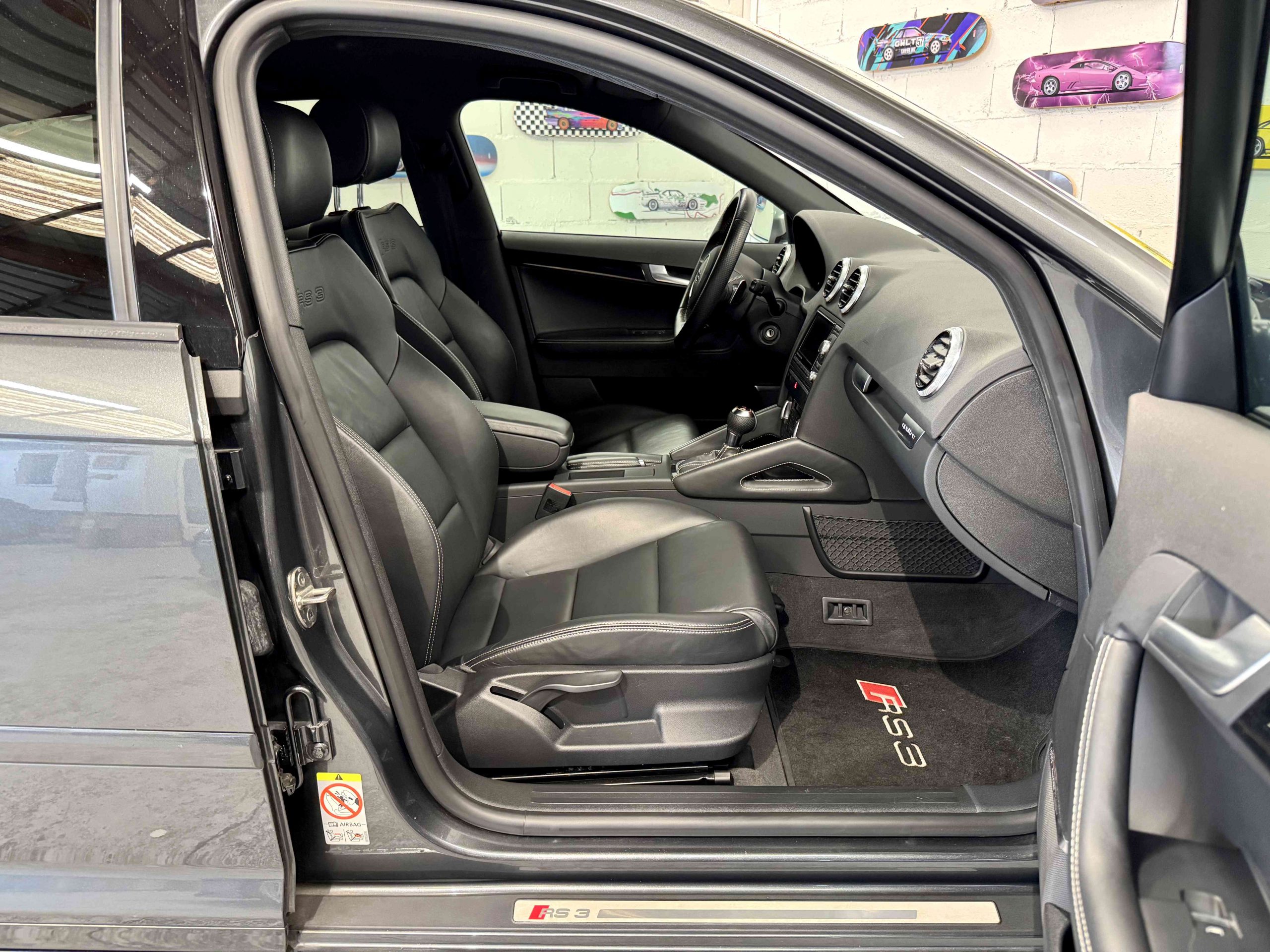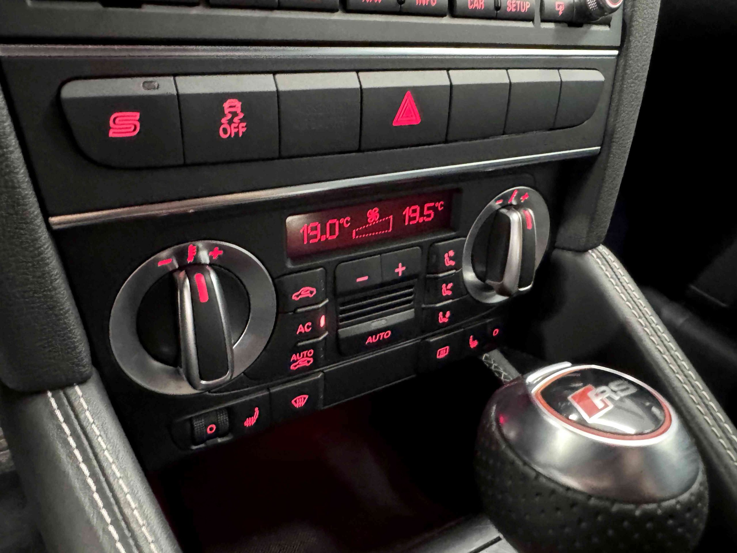 - Couronne de volant, pommeau, soufflet de levier de vitesses et manchette de frein à main en cuir Audi exclusive
