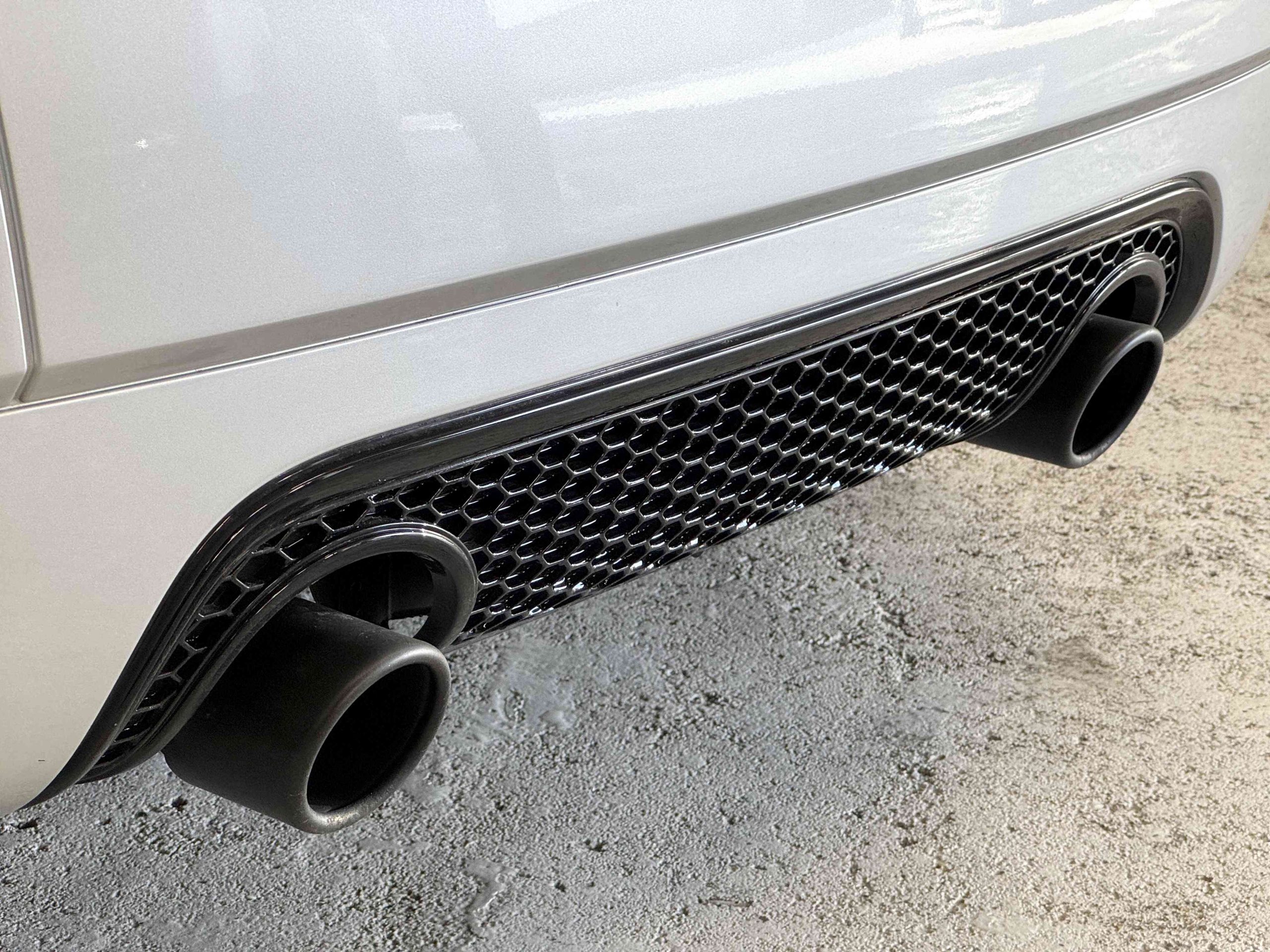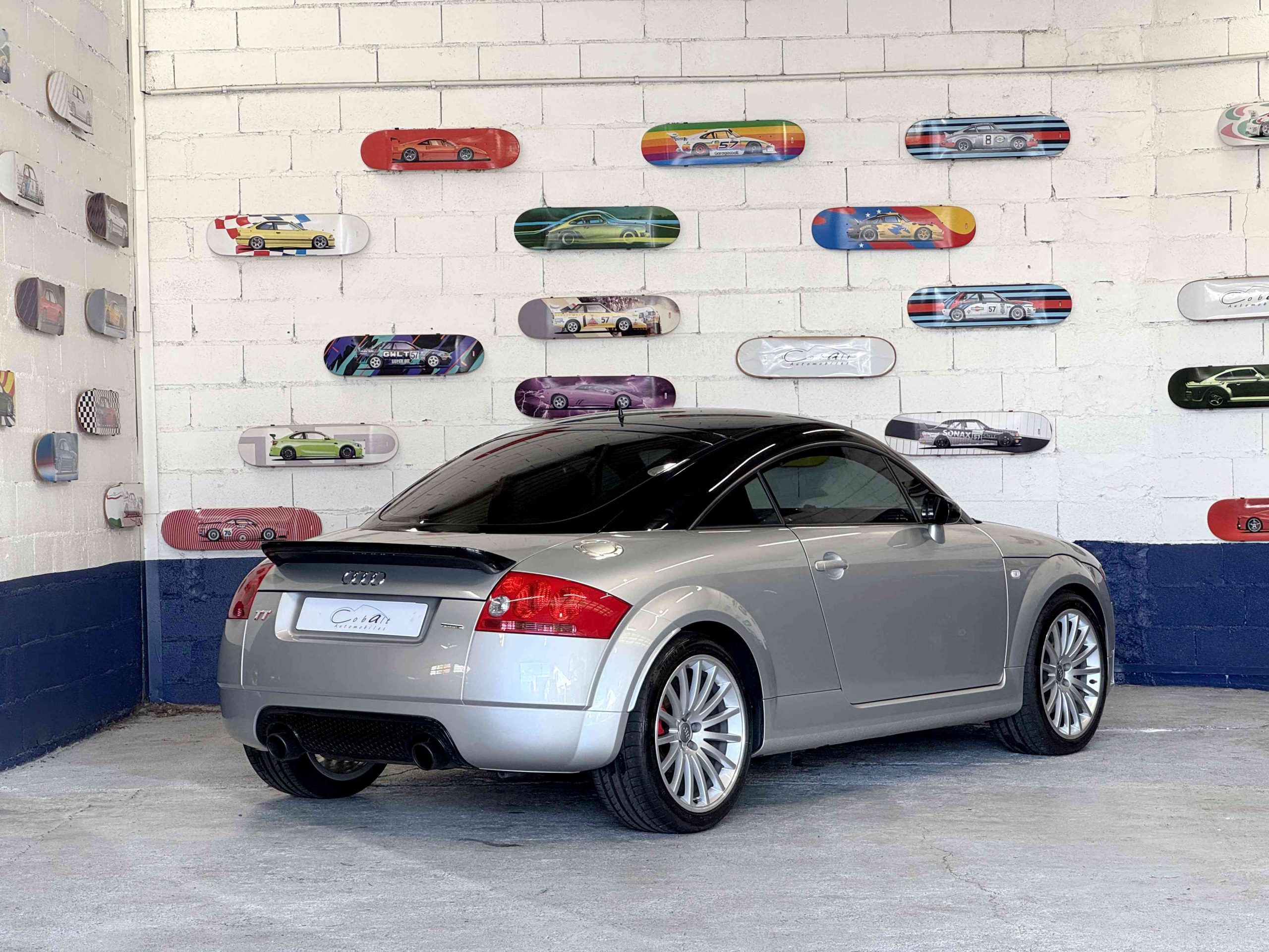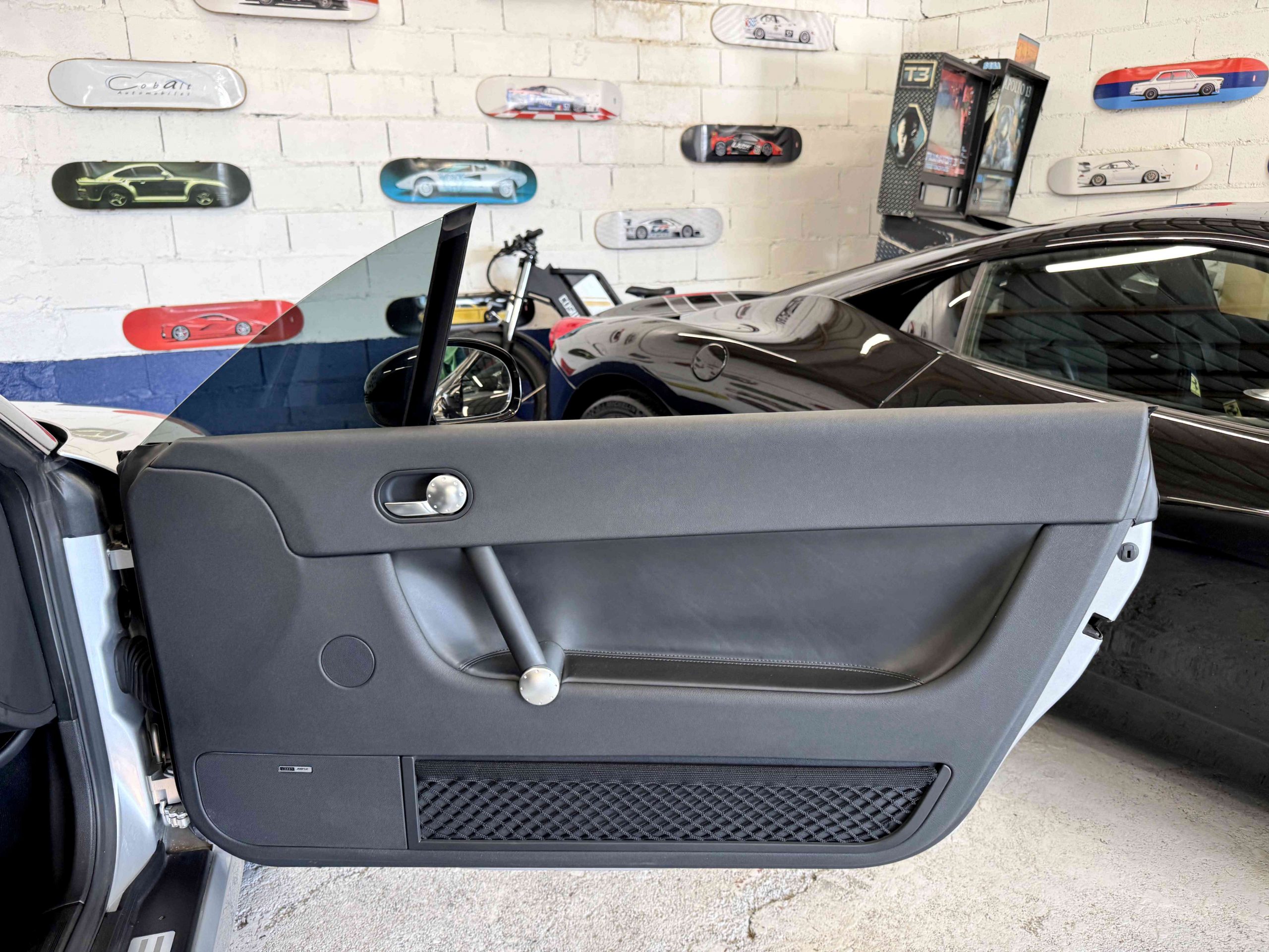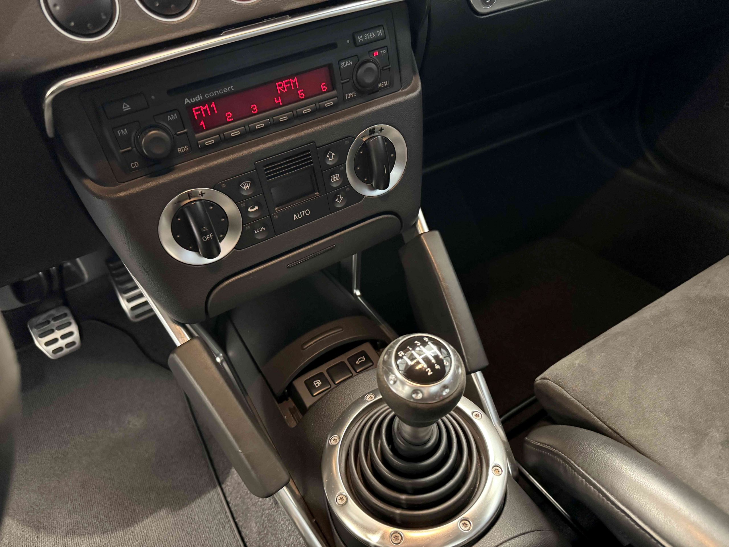 En 2005, pour fêter les 25 ans du système Quattro, Audi, par le biais de Quattro GmbH, décide de concentrer tout son savoir faire dans le TT. Le résultat est probant : une cure d’allègement de 75kg, un moteur qui passe de 225 ch à 240 ch. Suppression des airbags latéraux de la climatisation automatique (disponible en options gratuite dont notre exemplaire est équipé), sièges Recaro, suppression de la banquette arrière, volant et pommeau de levier de vitesse en alcantara, barre anti-rapprochement et filet de séparation font partie de la liste des changements de l’habitacle de cette version ultime de l’Audi TT, une sorte de mini GT3 RS. Audi en profite pour ajouter 15 ch au moteur et l’étagement des 6 rapports de la boîte manuelle sont resserrés. Au niveau train roulant et châssis, la batterie est déportée à l’arrière, les jantes 18 pouces sont spécifiques comme le réglage de suspension (-20 mm) conférant à ce TT un caractère jusque là inconnu pour ce modèle. Audi produira 1 165 TT Quattro sport dont 900 en conduite à droite et 24 exemplaires pour le marché Français, les seuls numérotés.