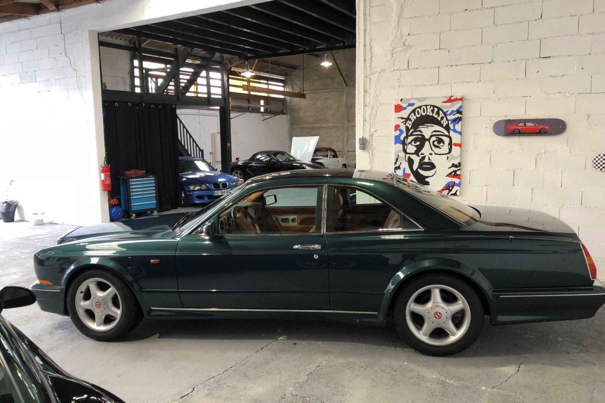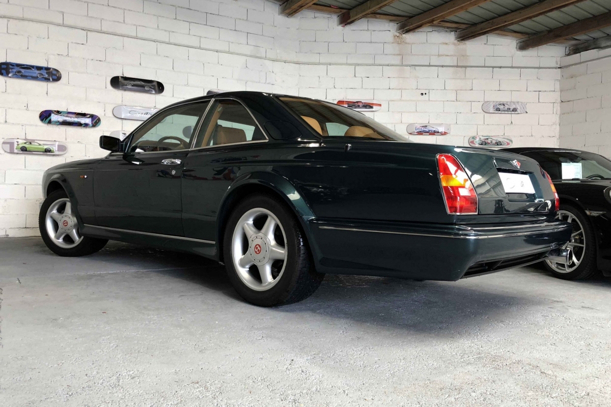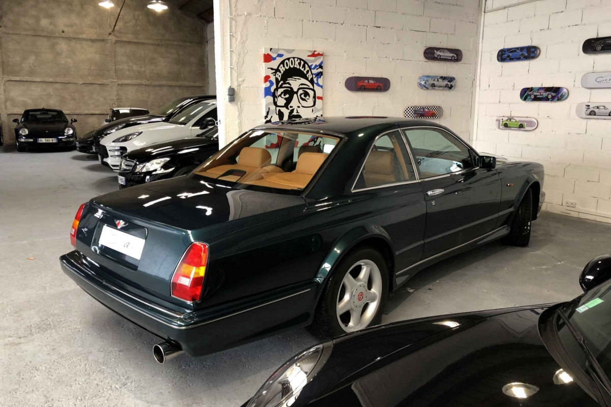 Lancée en 1996, la Continental T est une nouvelle déclinaison de la Continental R mais avec un caractère plus sportif, châssis raccourci de 10 cm, ailes élargies, 15 ch de plus (et un couple en augmentation) et 91kg de moins. Très exclusive car mêlant puissance, sportivité, luxe et matériaux raffinés, cette Bentley est également très rare avec seulement 322 exemplaires plus 29 ensuite en Pack Mulliner produits.