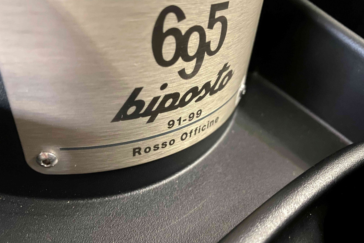 Nous vous présentons cette très rare Fiat 695 Abarth Biposto Rosso Officine. Série limitée de 99 exemplaires dans la série limitée des Biposto, c’est en quelque sorte la version ultime des Fiat 595 Abarth. Cette série ultra limitée était d’ailleurs vendue sous contrat d’engagement de non vente pendant une durée de 6 mois à leur livraison. A noter, selon nos informations, que la version Rosso Officine n’était pas disponible avec la boîte crabot et les vitres légères. Concernant notre véhicule, le numéro 91, son premier propriétaire a tenu à en faire la version la plus light possible en ne cochant pas l’option système multimédia et climatisation et en prenant la totalité des options carbones disponibles mais également en allant piocher dans le catalogue des accessoires, et la liste est impressionnante !