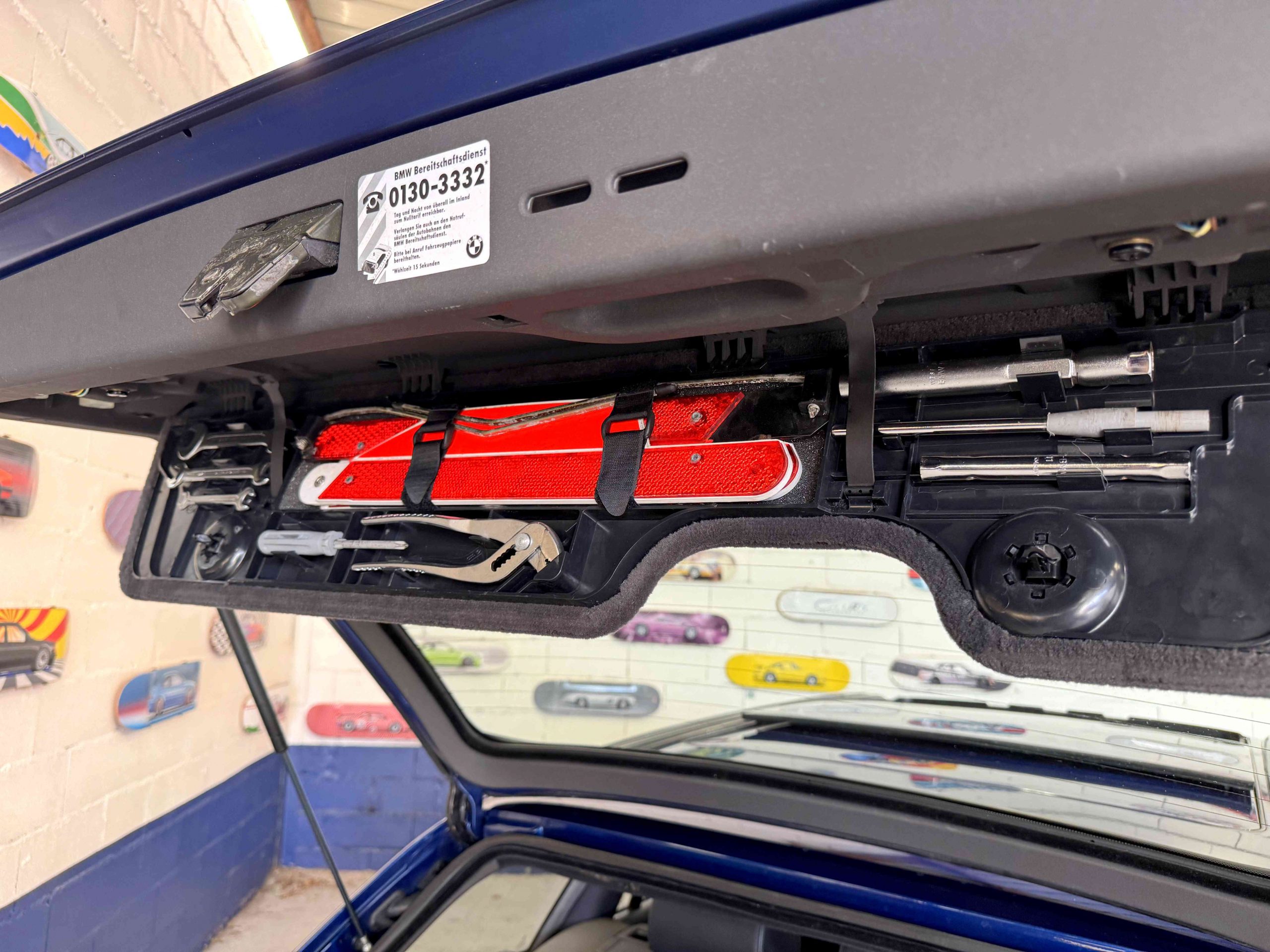 Carnet, notice, facture, clef + double + triple, roue de secours et trousse à outils complète.