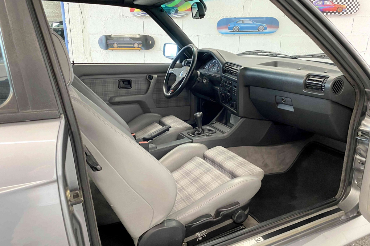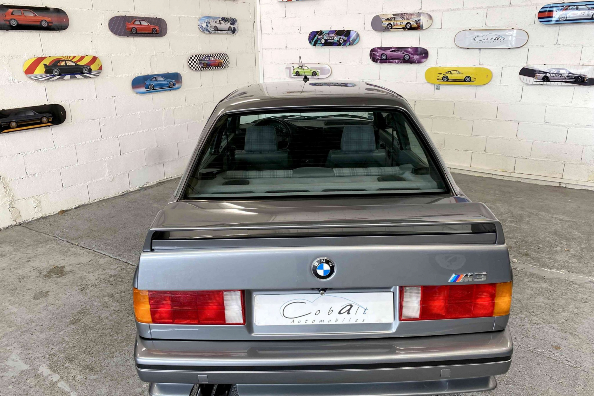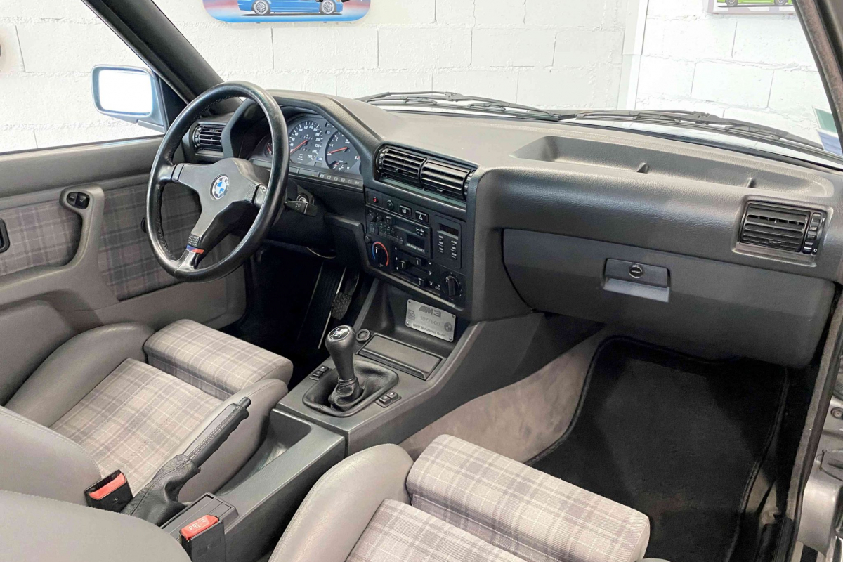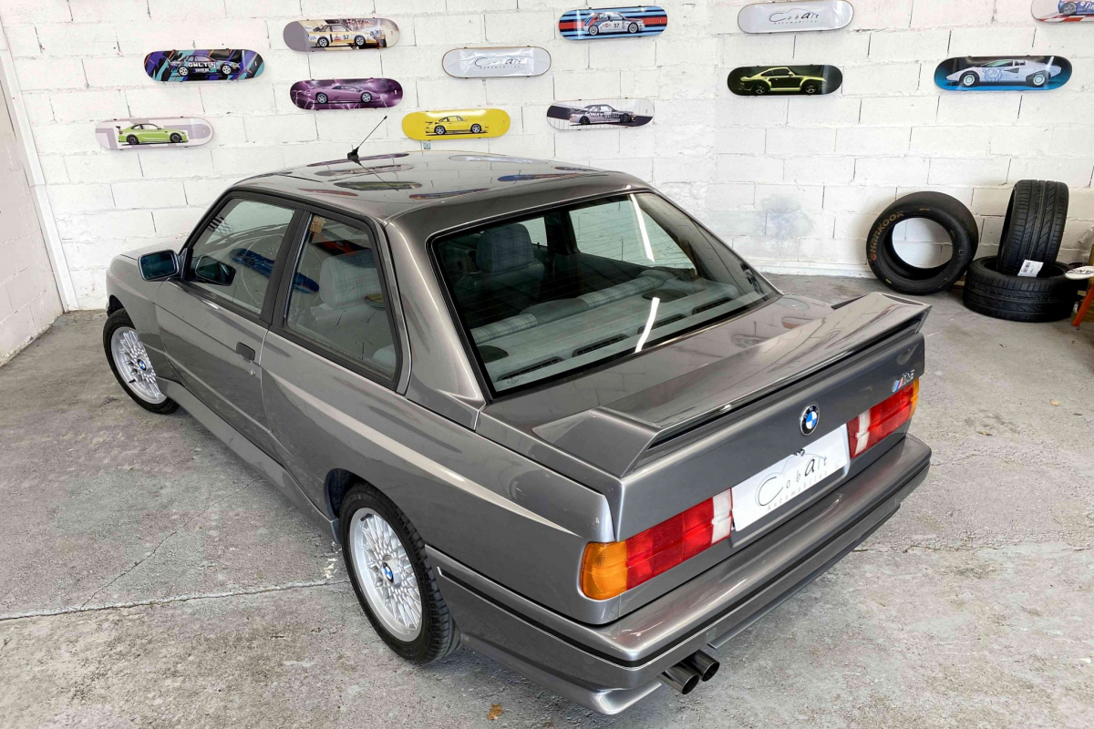 Nous vous proposons à la vente cette exceptionnelle BMW M3 E30 évolution 2 gris Nogaro. Exemplaire 107 sur les 500 unités produites, dans en parfait état de présentation. Elle dispose de toute ses pièces spécifiques évolution 2 d’époque, lame avant, jantes 16 pouces, vitres arrières allégées, aileron arrière spécifique et moteur 220 ch décatalysé. Parfaitement documentée, elle s’accompagne de son carnet de suivi d’entretien et d’un classeur de facture permettant de suivre son kilométrage depuis sa mise en circulation.