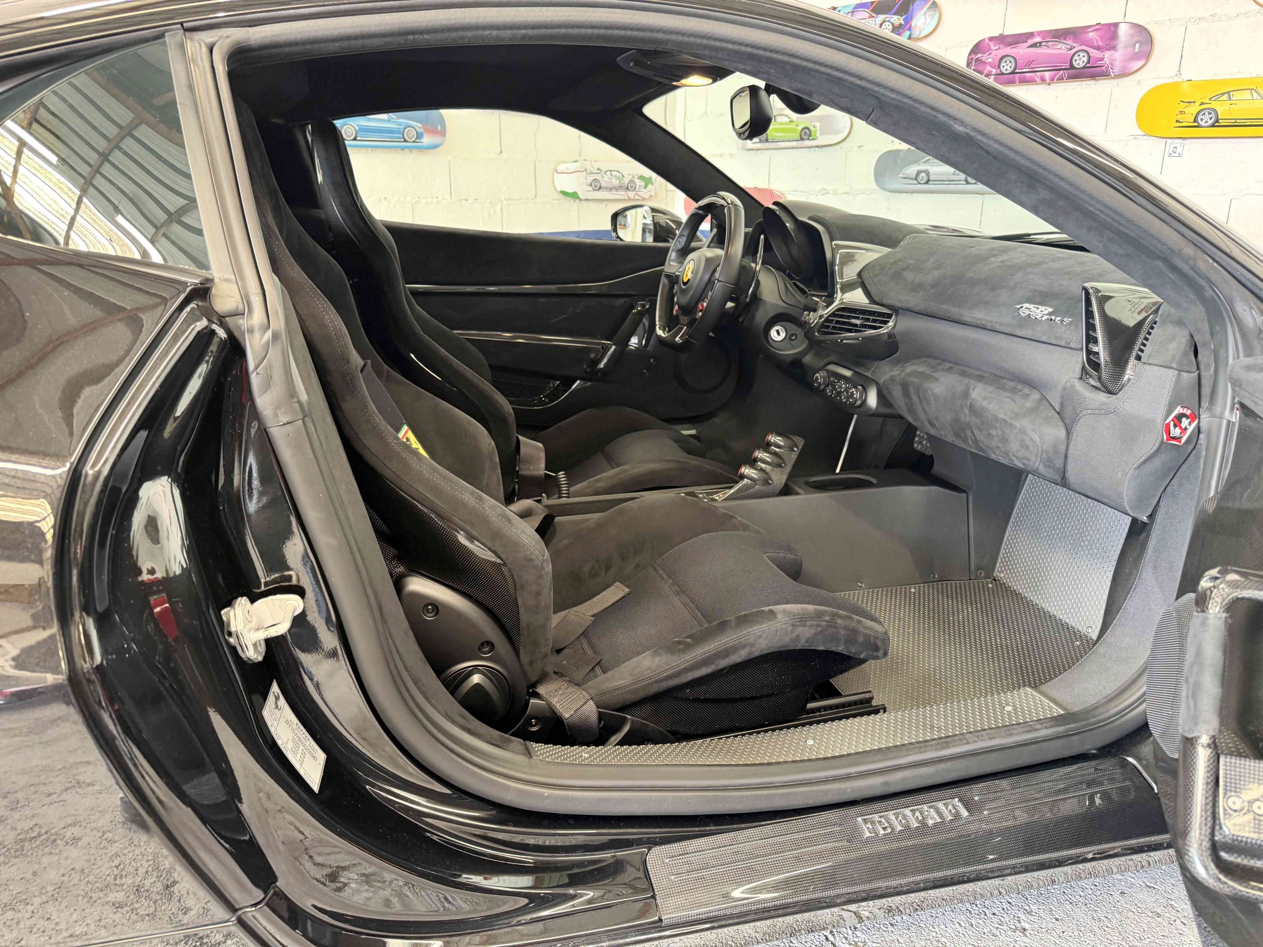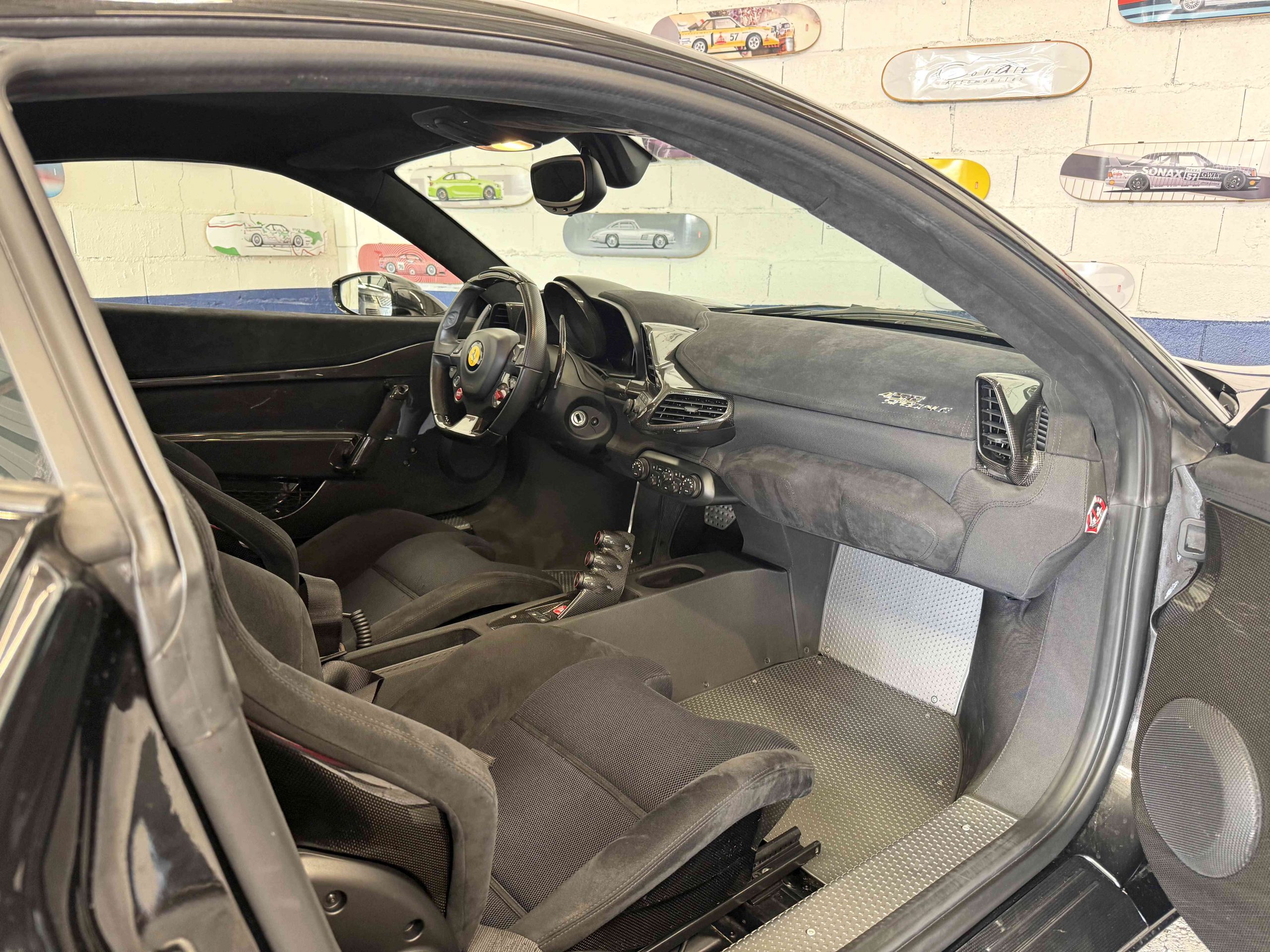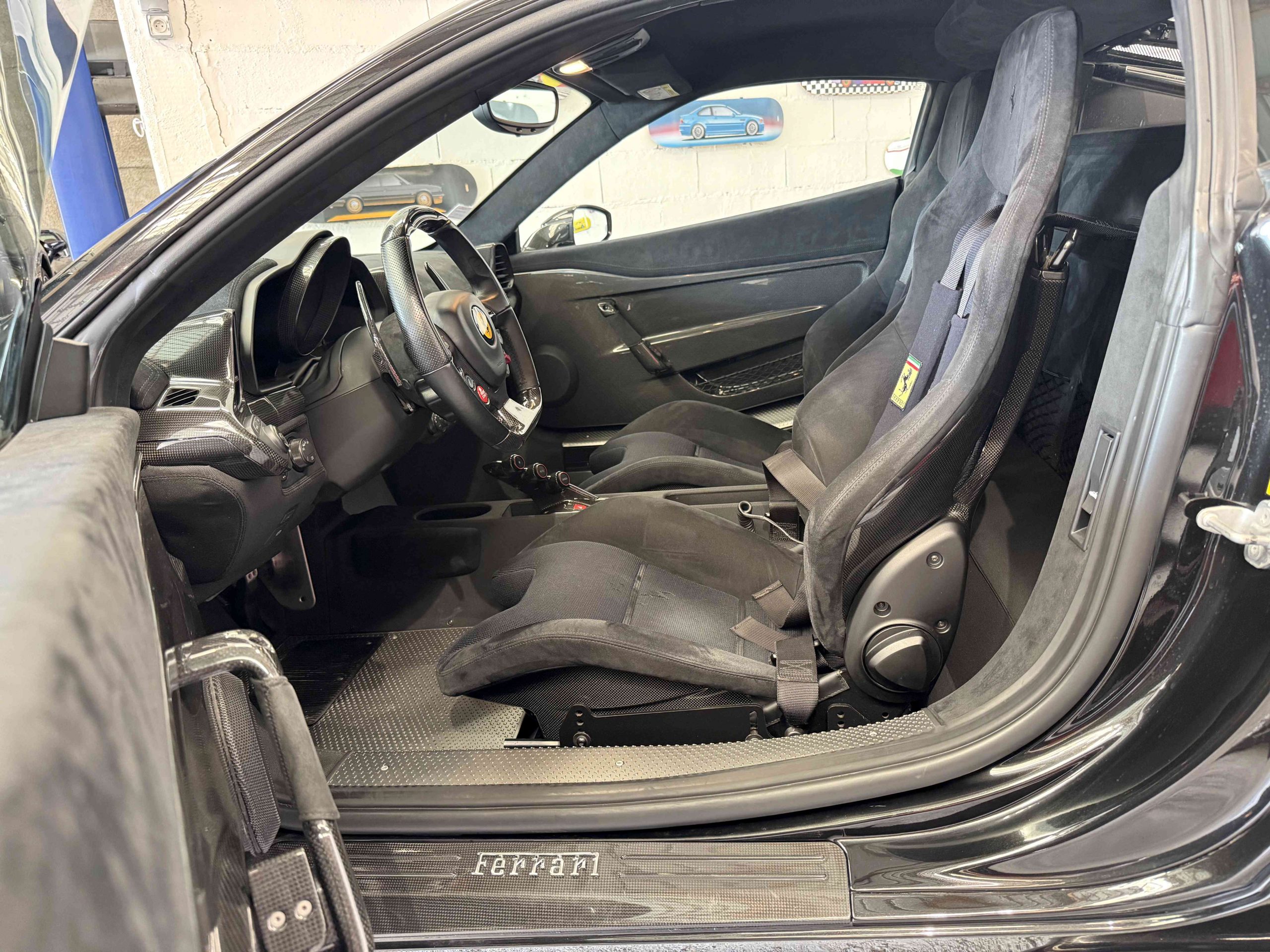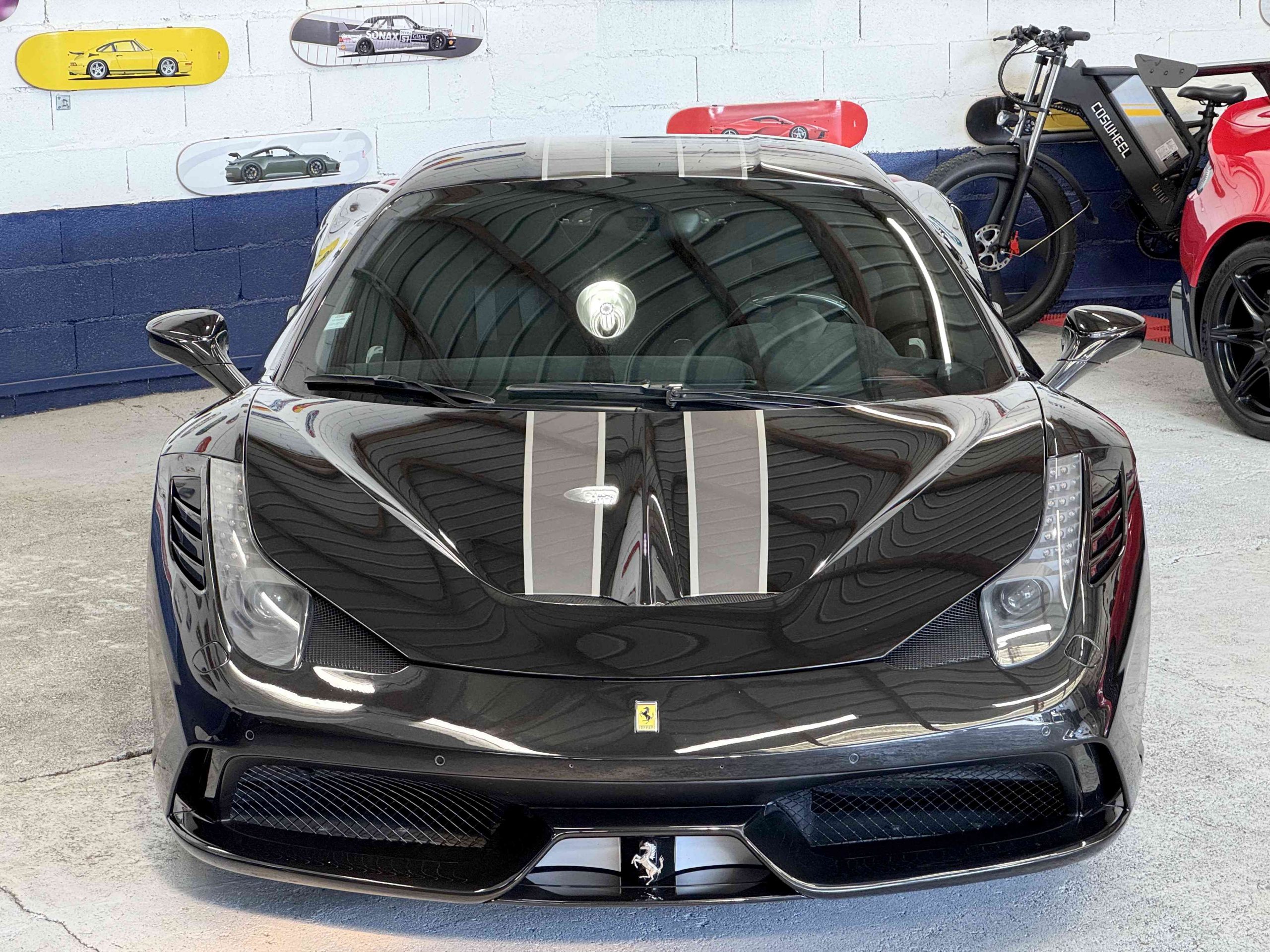 De plus en plus prisée par les collectionneurs, cette Ferrari 458 Spéciale a en effet tous les attributs pour plaire : allégement drastique, dernier moteur atmosphérique poussé dans ses limites permettant un gain de 35ch et une multitude d’améliorations aérodynamiques. Sa configuration full black avec les bandes racing et les harnais accentue son côté bestial et son esprit racing non usurpé !