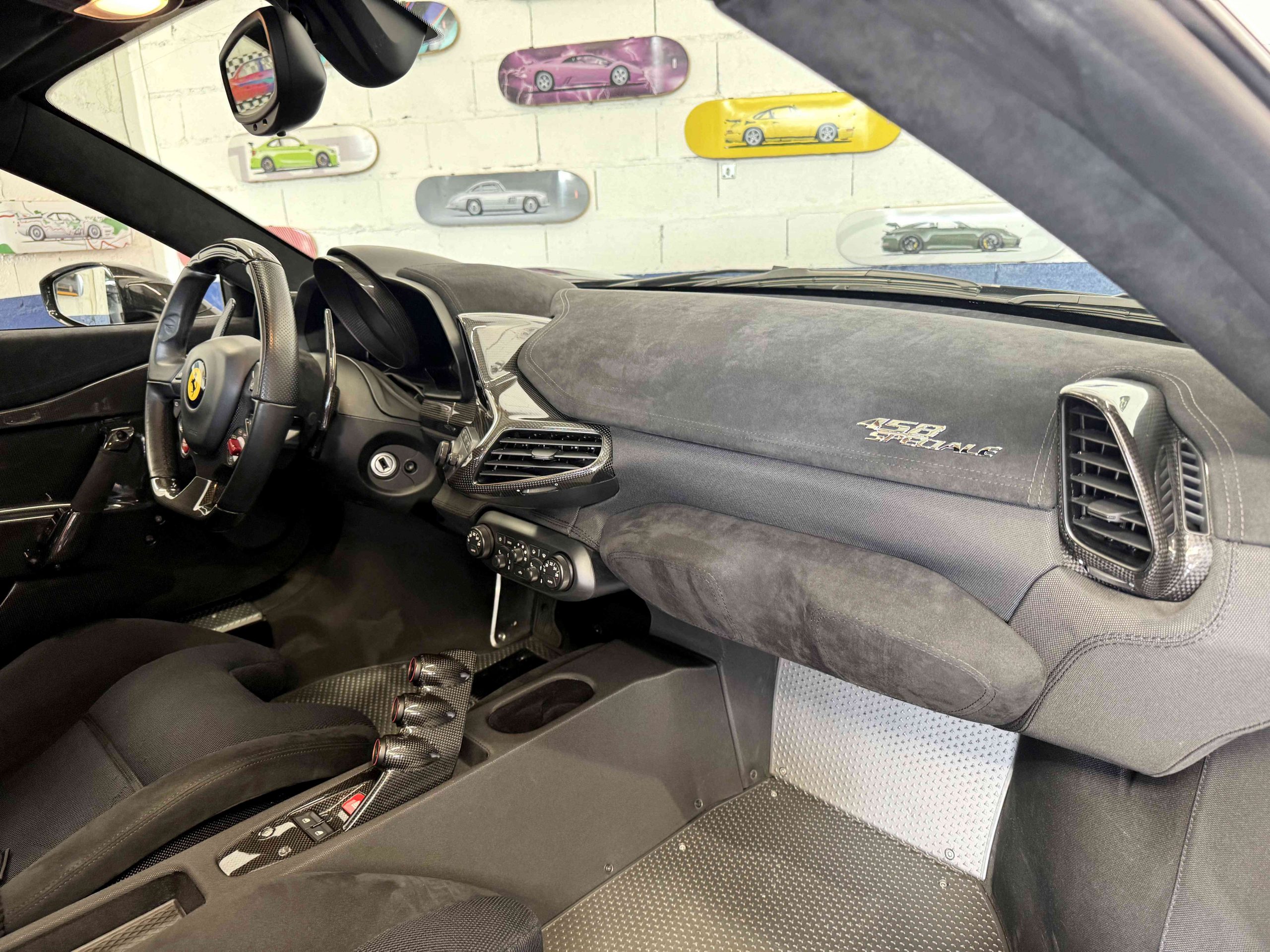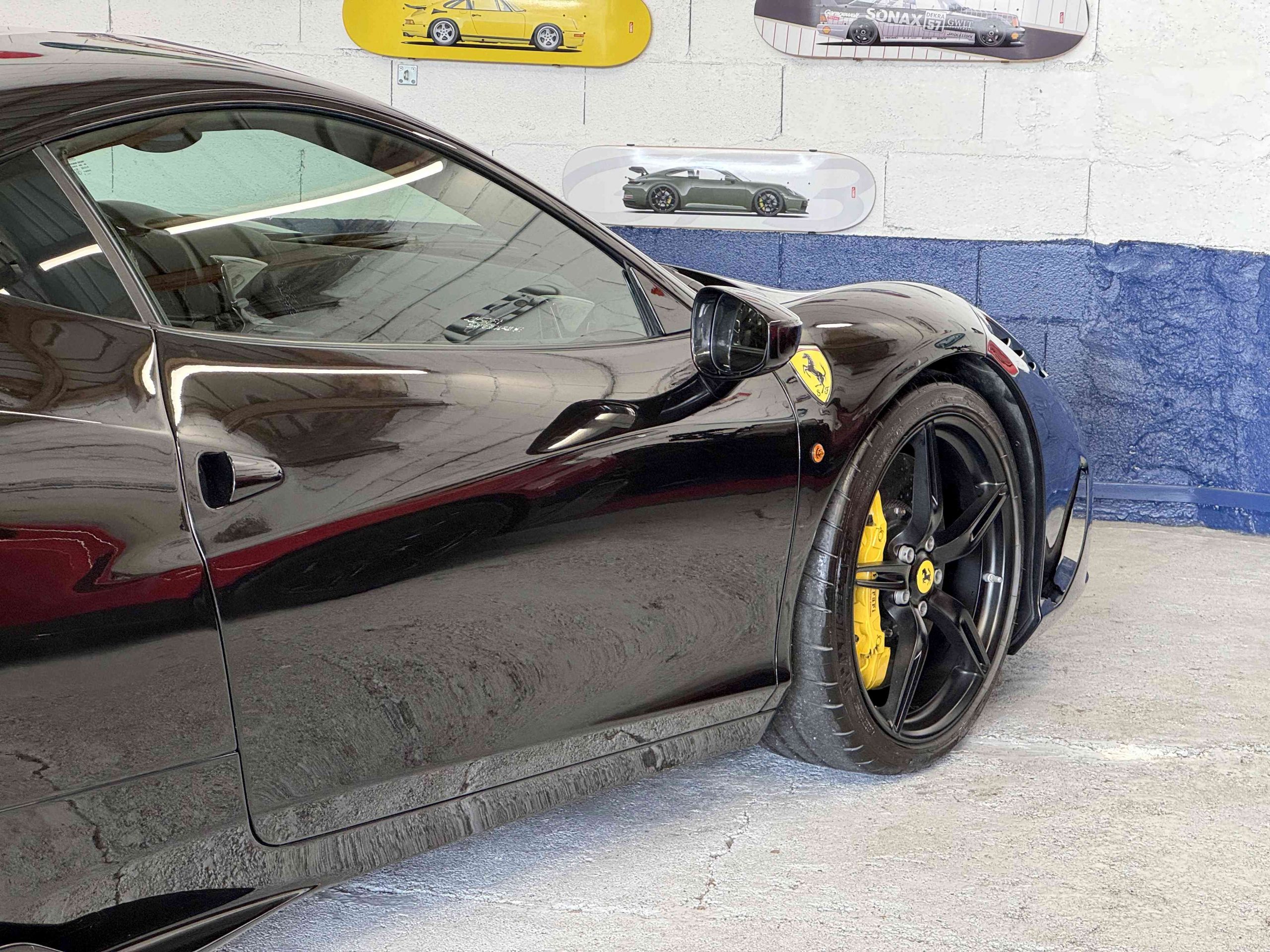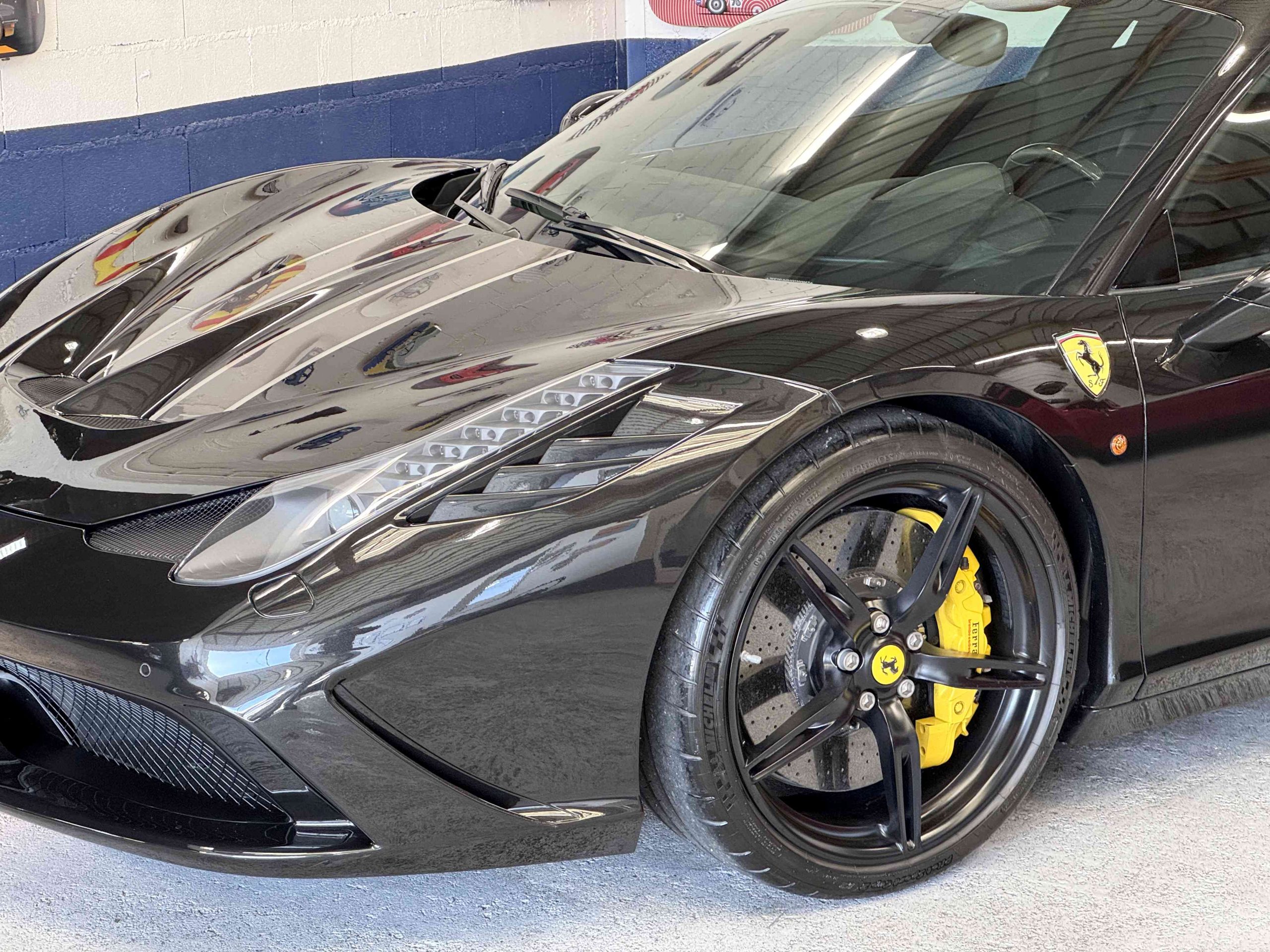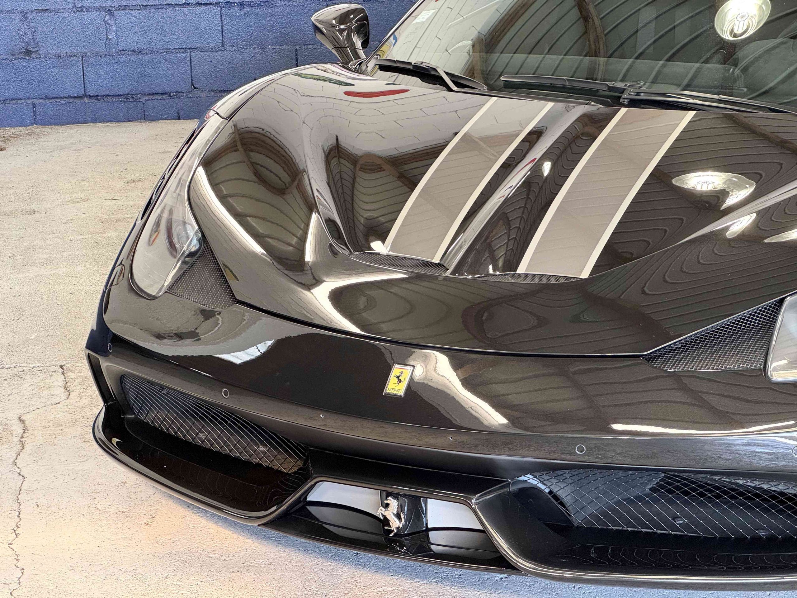De plus en plus prisée par les collectionneurs, cette Ferrari 458 Spéciale a en effet tous les attributs pour plaire : allégement drastique, dernier moteur atmosphérique poussé dans ses limites permettant un gain de 35ch et une multitude d’améliorations aérodynamiques. Sa configuration full black avec les bandes racing et les harnais accentue son côté bestial et son esprit racing non usurpé !