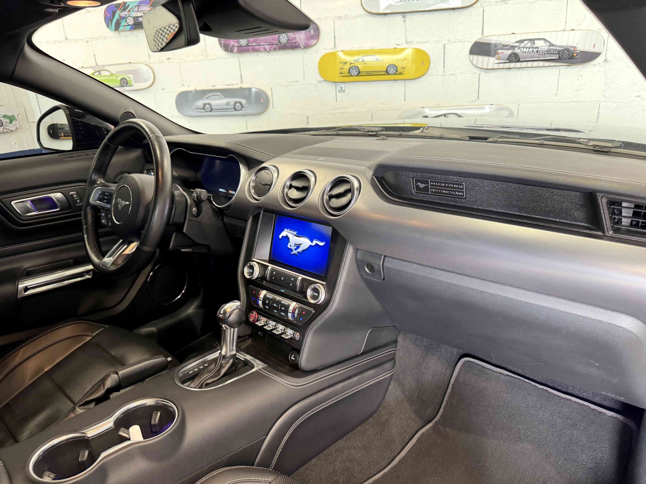 La Mustang GT “55ème Anniversaire” est une édition spéciale célébrant les 55 ans de la légendaire pony car. Elle reprend les lignes musclées de la phase 2 avec un V8 atmosphérique 5.0 L développant 450 ch, associé à la boîte auto 10 rapports permettant des accélérations franches tout en conservant une grande polyvalence. Cette version se distingue par des éléments de finition exclusifs et une dotation généreuse en équipements, alliant sportivité et confort moderne.