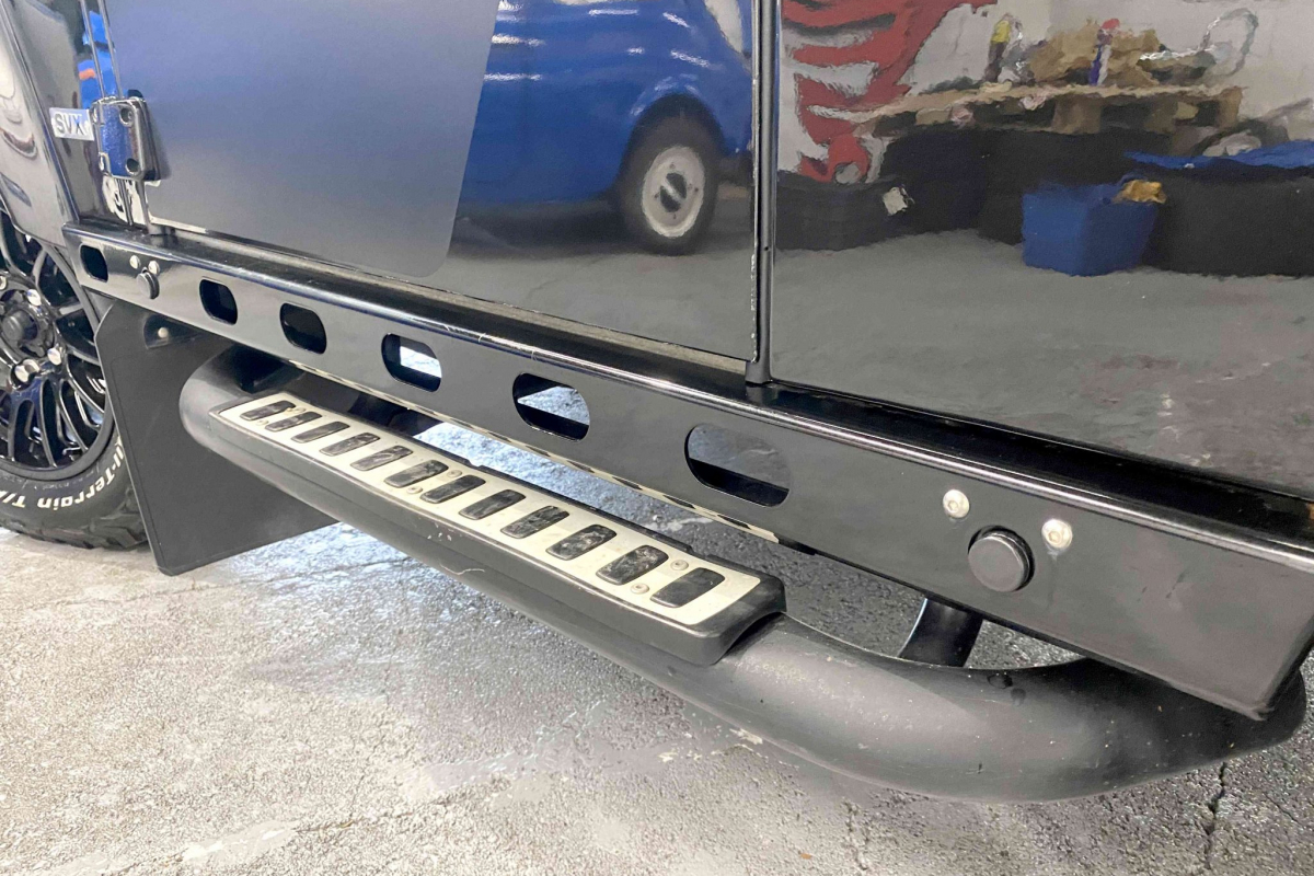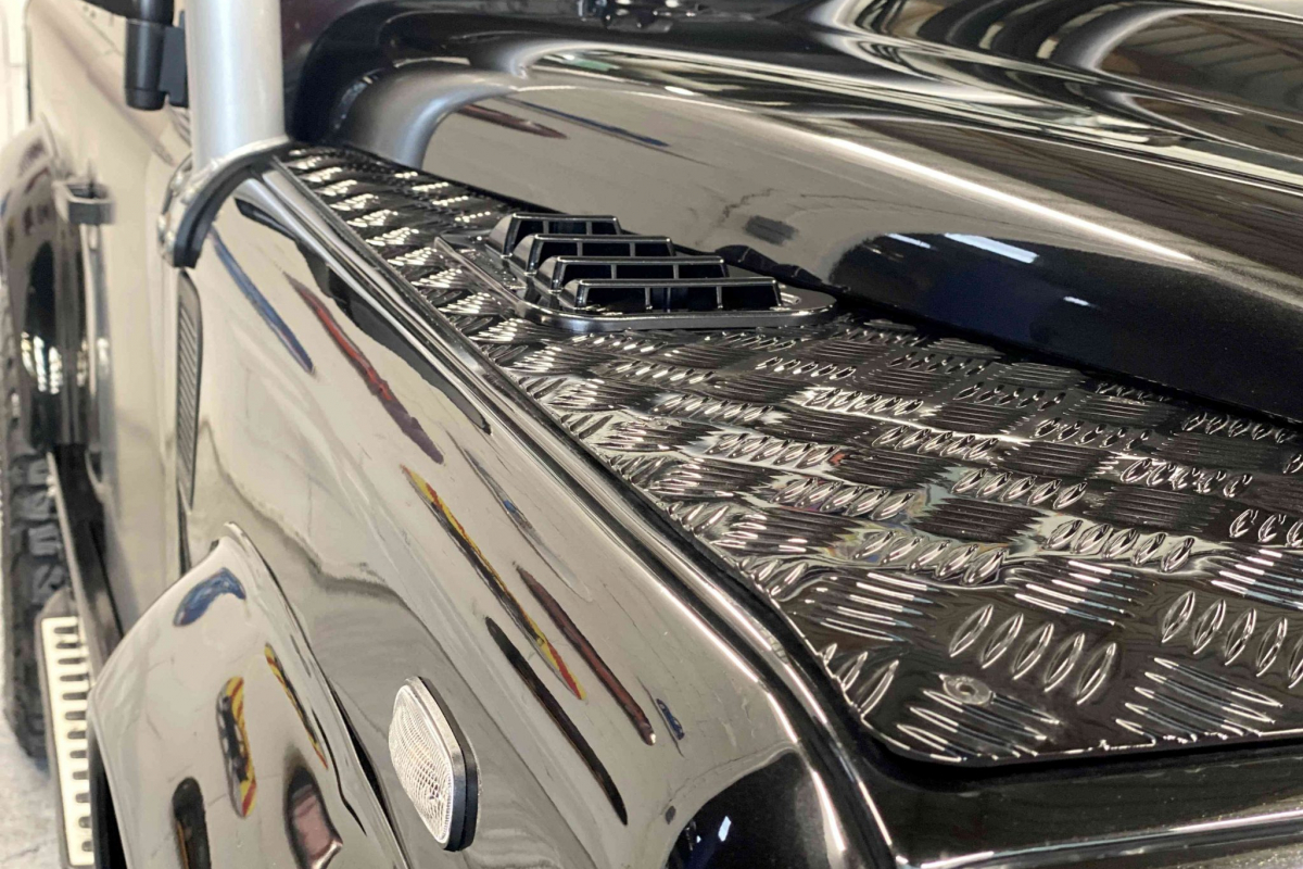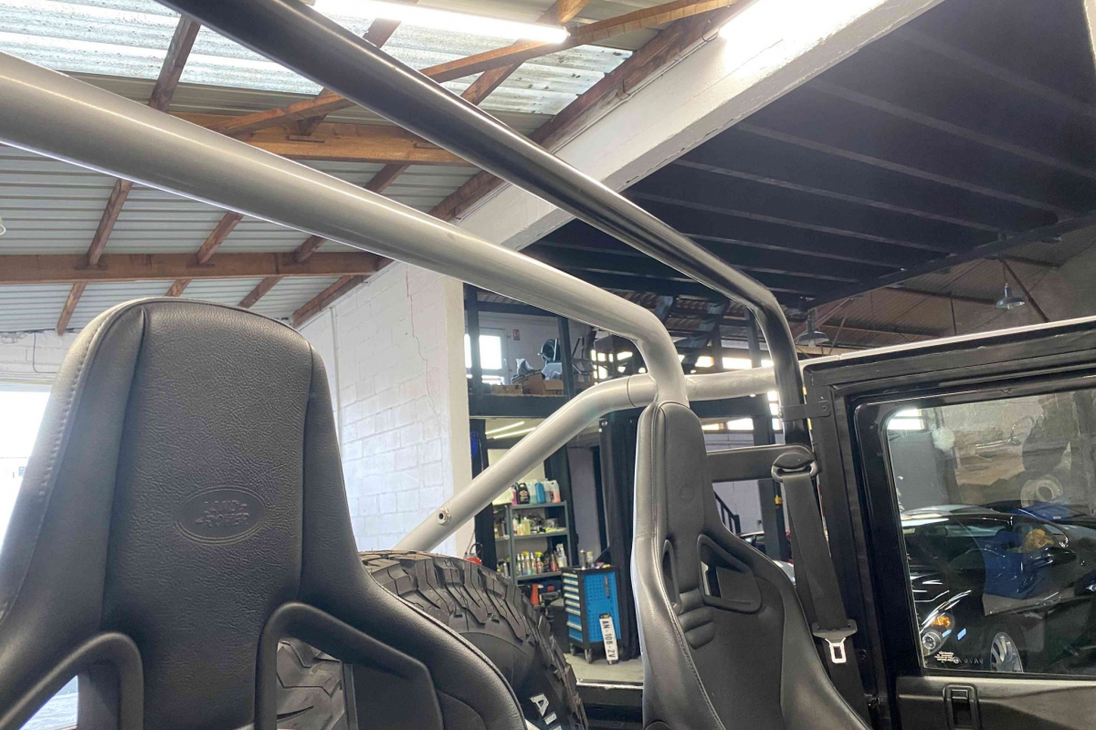 Le dernier propriétaire du véhicule a également voulu donner un look plus baroudeur et agressif au véhicule en ajoutant de nombreuses pièces du célèbre préparateur Bowler sur le véhicule et le résultat est très réussi !