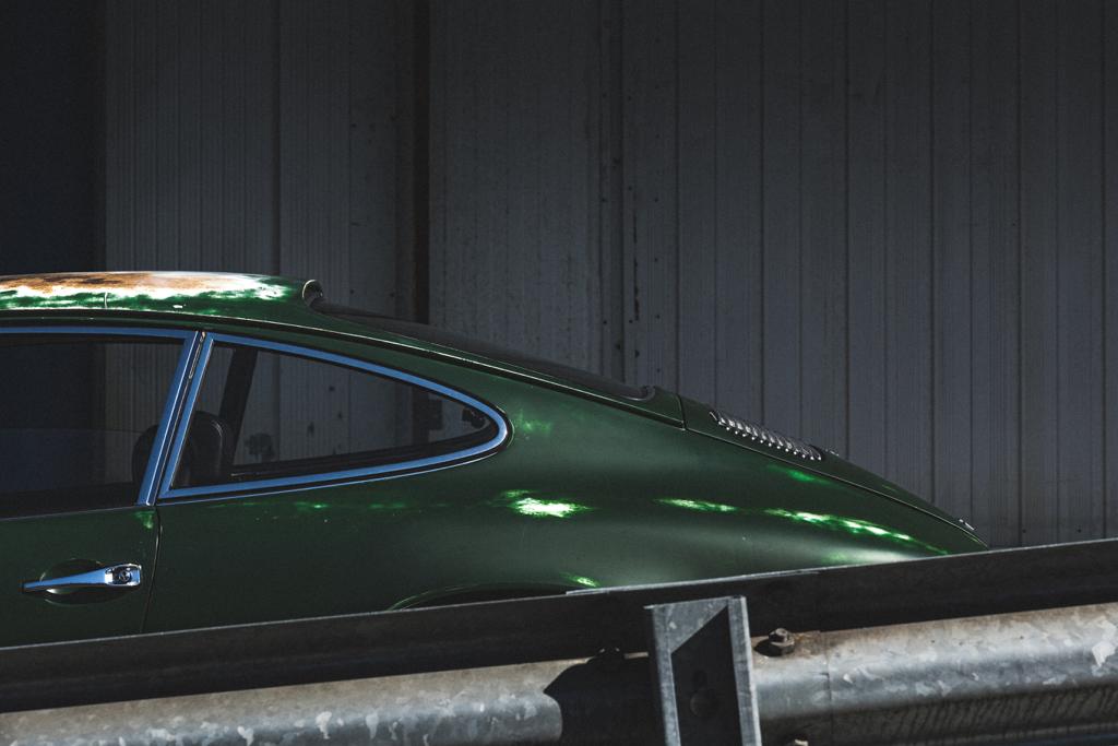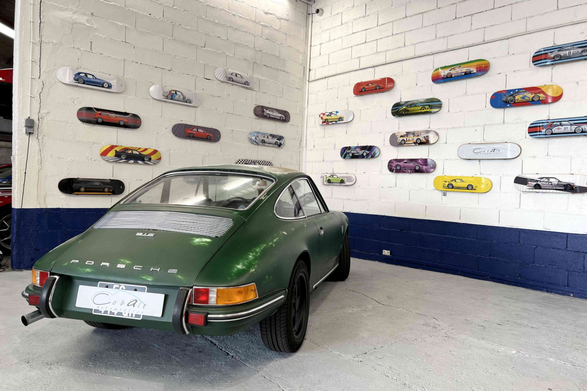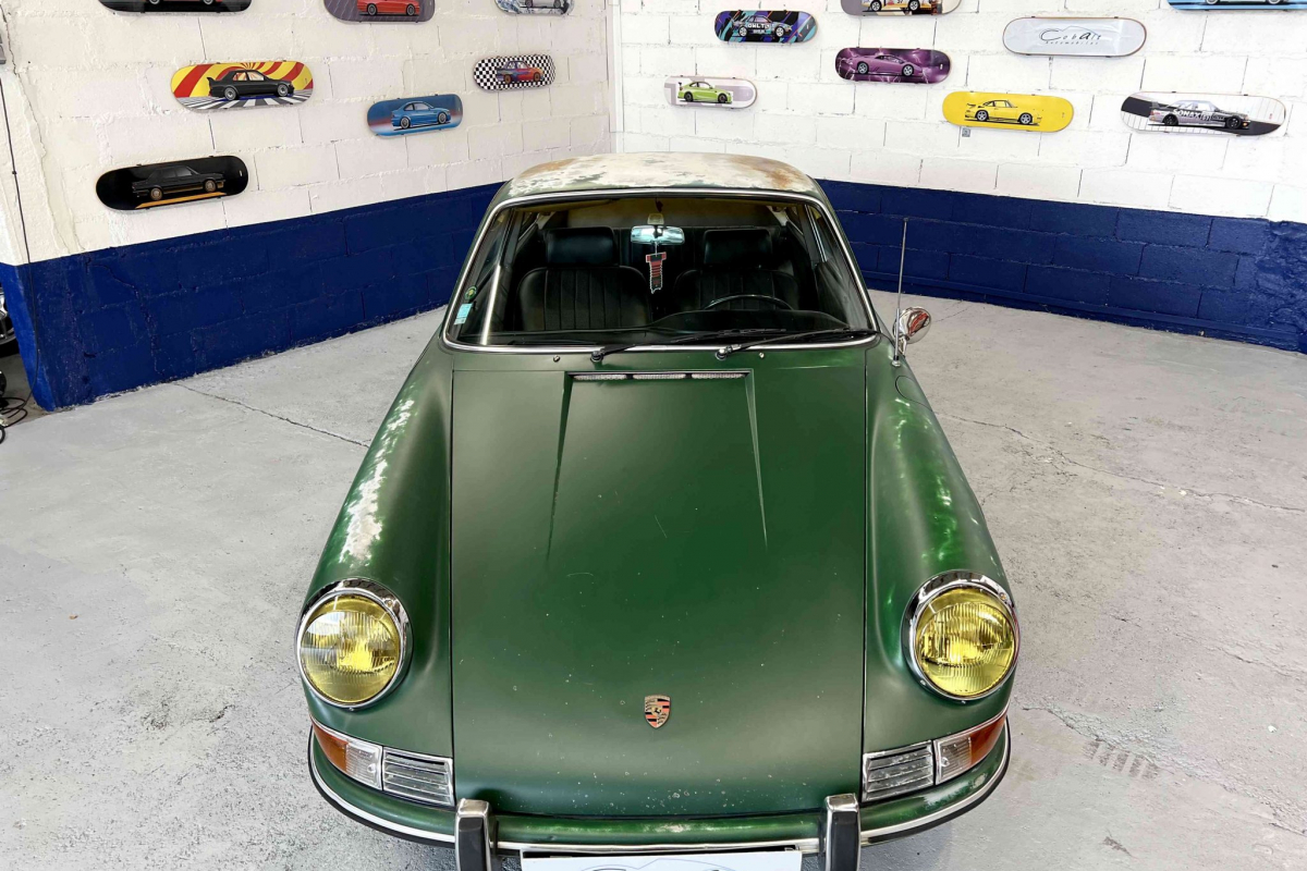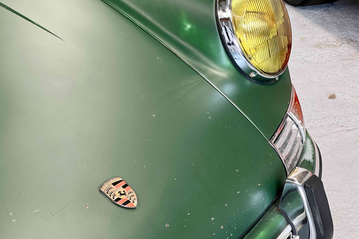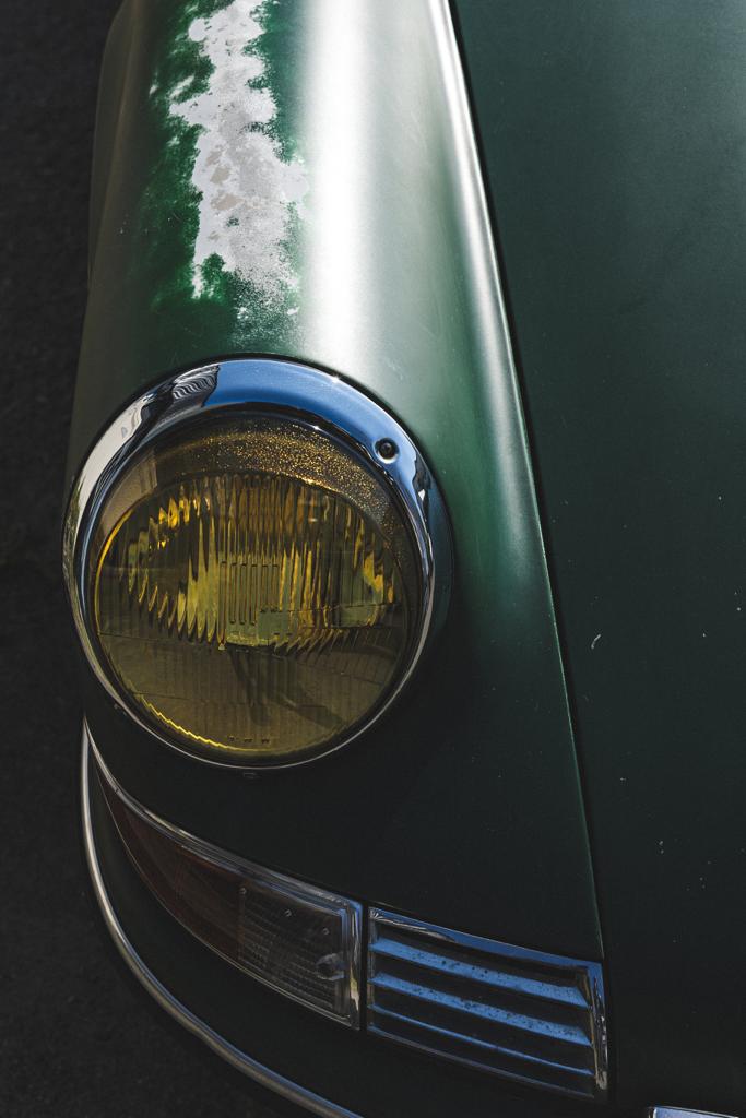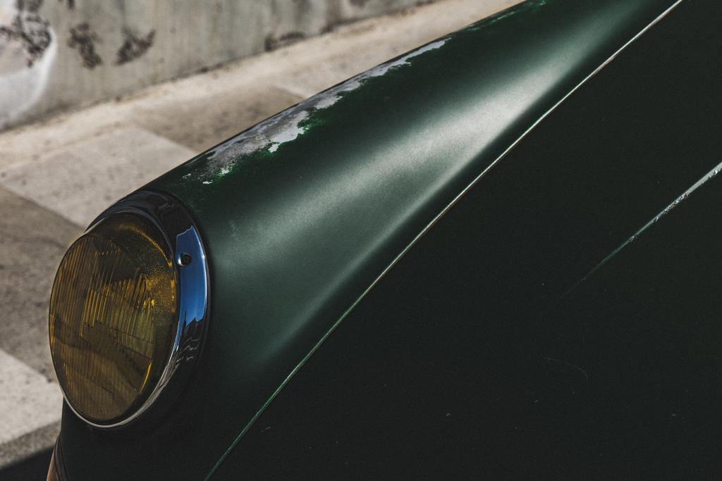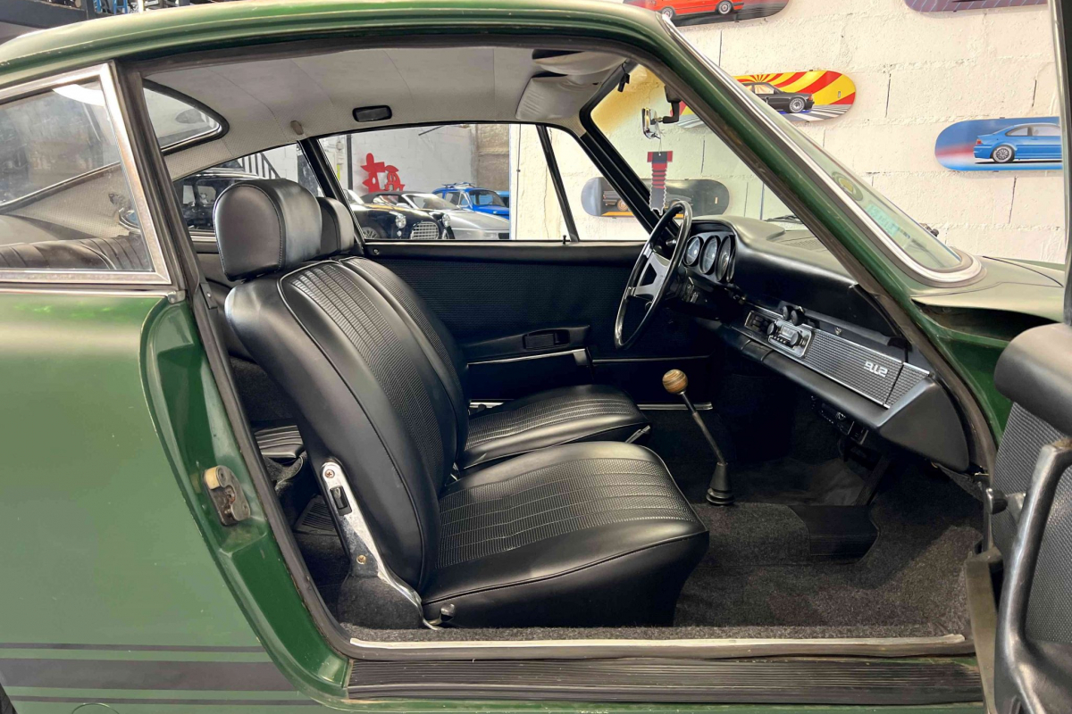 Produite en 1969, cette Porsche 912 a commencé sa vie aux USA. Elle sera méticuleusement détenue et entretenue par la même famille jusqu’en 2016. Preuve en est, nous disposons de quelques factures d’entretiens d’époque mais surtout d’un carnet d’origine rempli de A à Z avec des relevés de compression régulière agrafés dans ce dernier. En 2016, elle sera rachetée par la seconde et actuelle main. La caisse étant saine et la patine d’origine du véhicule étant très belle, ce dernier décide de sauvegarder ce rare état d’origine. Il fera vernir la caisse afin de garder l’aspect esthétique original de l’auto et de lui rendre un style unique, voir artistique !