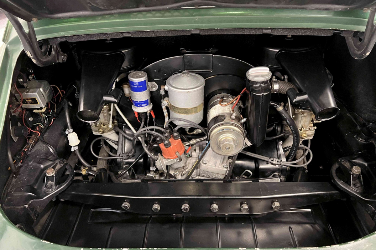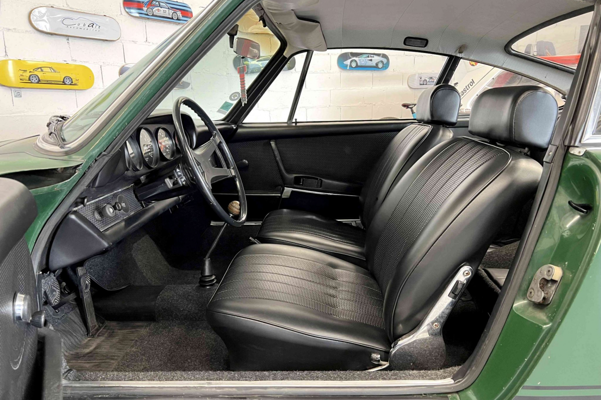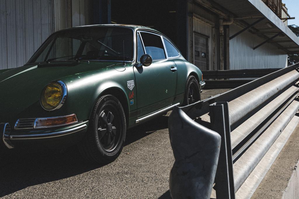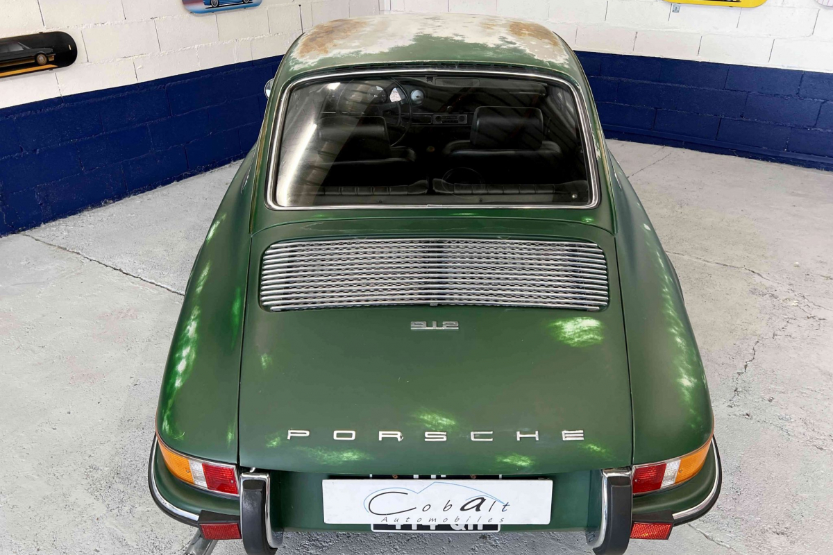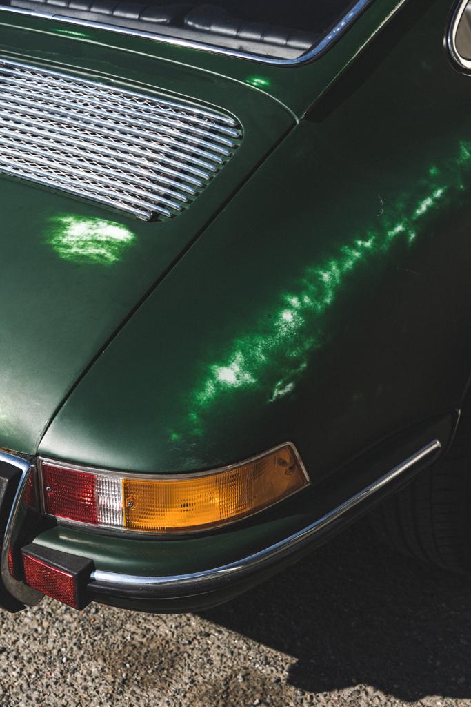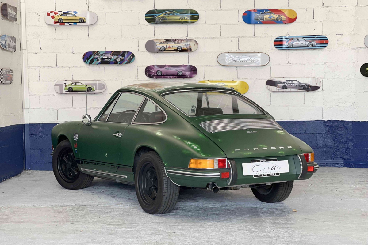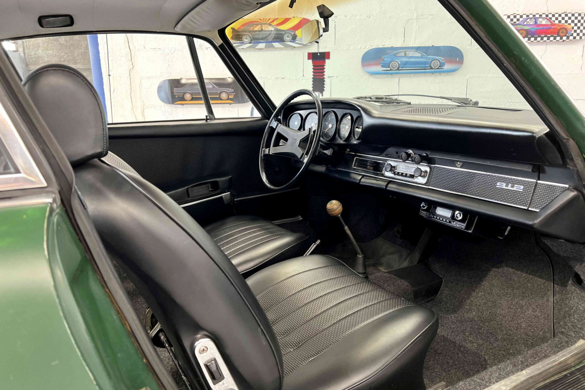 Produite en 1969, cette Porsche 912 a commencé sa vie aux USA. Elle sera méticuleusement détenue et entretenue par la même famille jusqu’en 2016. Preuve en est, nous disposons de quelques factures d’entretiens d’époque mais surtout d’un carnet d’origine rempli de A à Z avec des relevés de compression régulière agrafés dans ce dernier. En 2016, elle sera rachetée par la seconde et actuelle main. La caisse étant saine et la patine d’origine du véhicule étant très belle, ce dernier décide de sauvegarder ce rare état d’origine. Il fera vernir la caisse afin de garder l’aspect esthétique original de l’auto et de lui rendre un style unique, voir artistique !